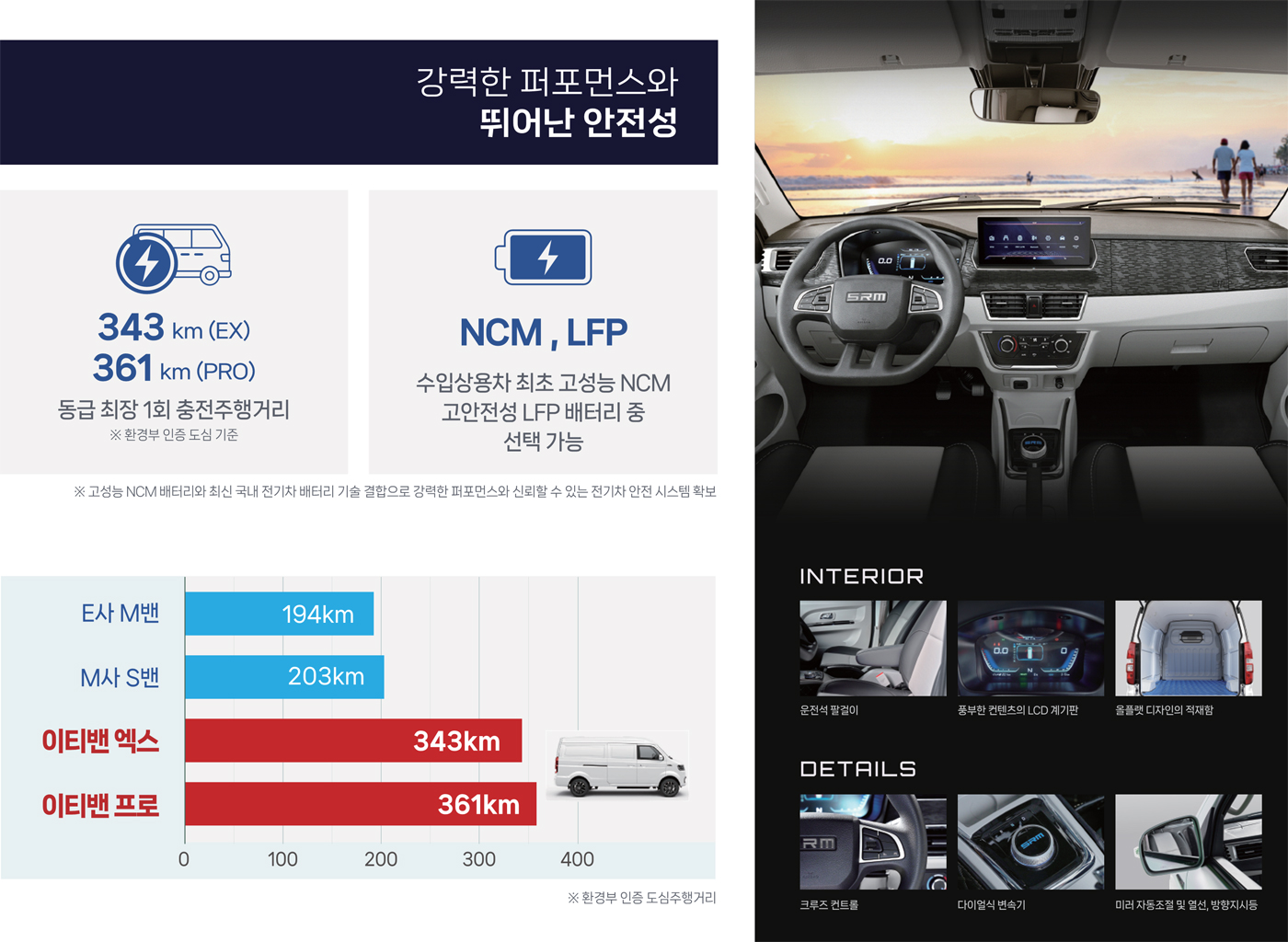 고밀도 NCM 배터리로 더욱 경량화 된 이티밴 엑스는
